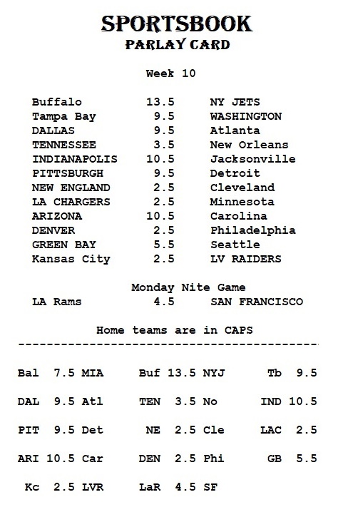Welcome to the Betting Window and the Sportsbook Parlay Card Pool. The entry fee is $10